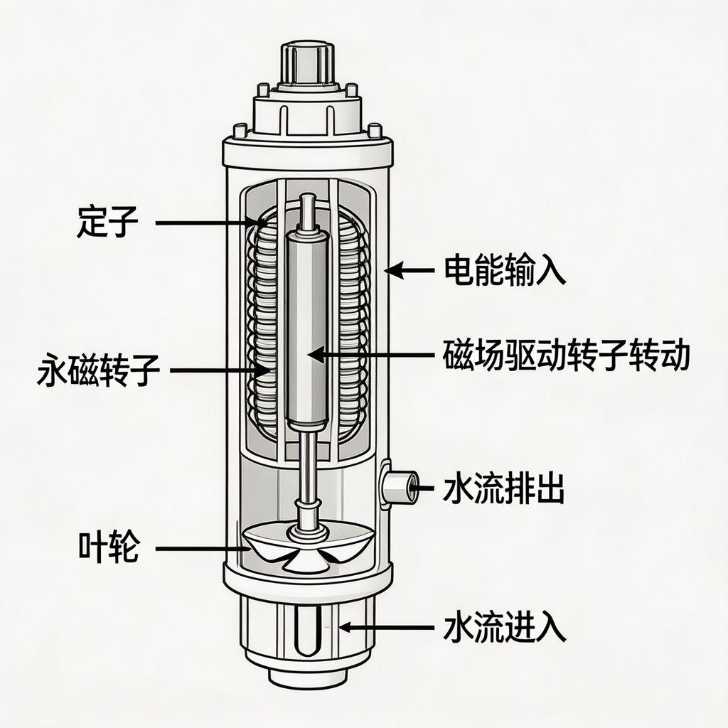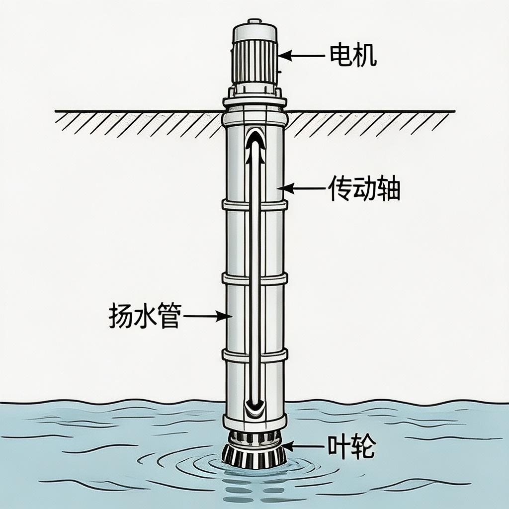 整体呈细长柱状,适配深井的狭小井径,叶轮与导流壳为多级串联结构,每级独立增压。