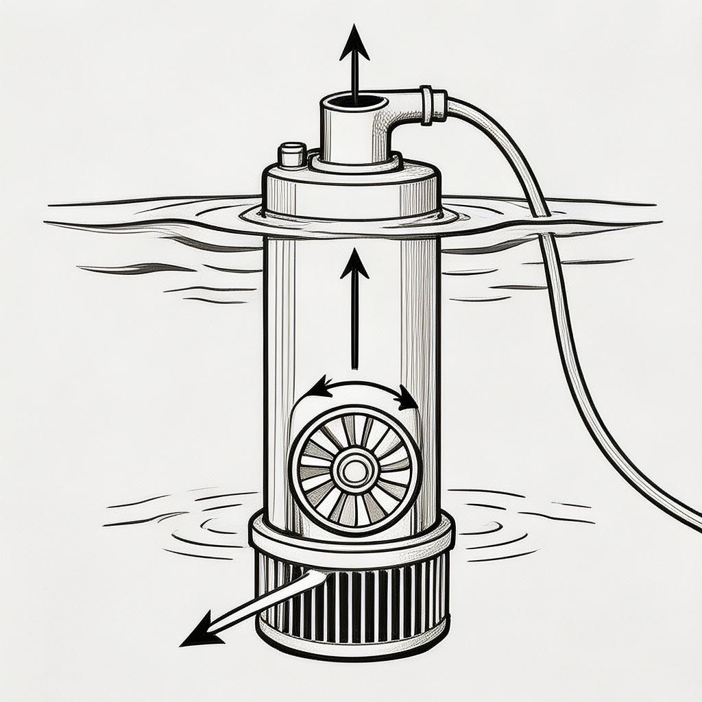 本分类下的器具为潜入式提水泵组设备,主要用于将泵体与电机集成后潜入水中进行提水作业,无需地面的传动轴结构,安装便捷,可适配不同的水质、深度需求,不同类型的潜水泵可满足不同的工况,是浅水、中等深度水井的常用提水设备。