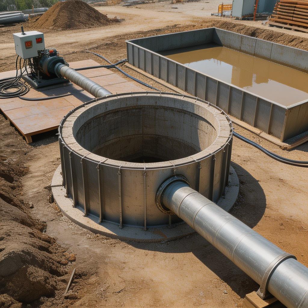 集水井顶部设置操作平台与防护栏杆,井口高出地面,防止地表污水进入,整体结构紧凑,集水范围大。