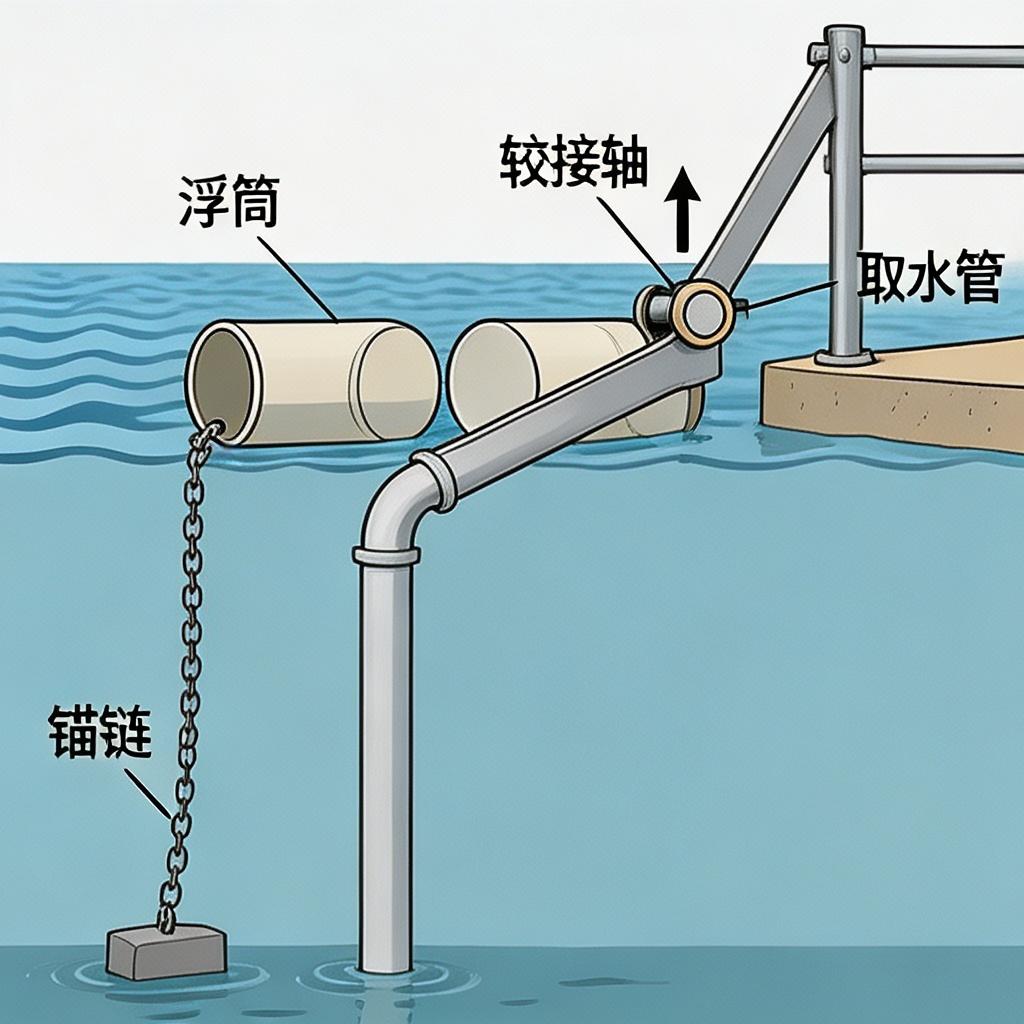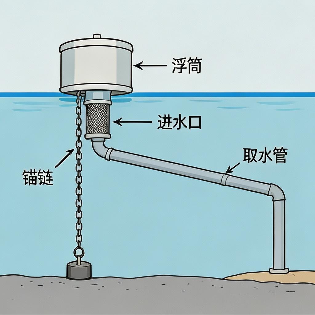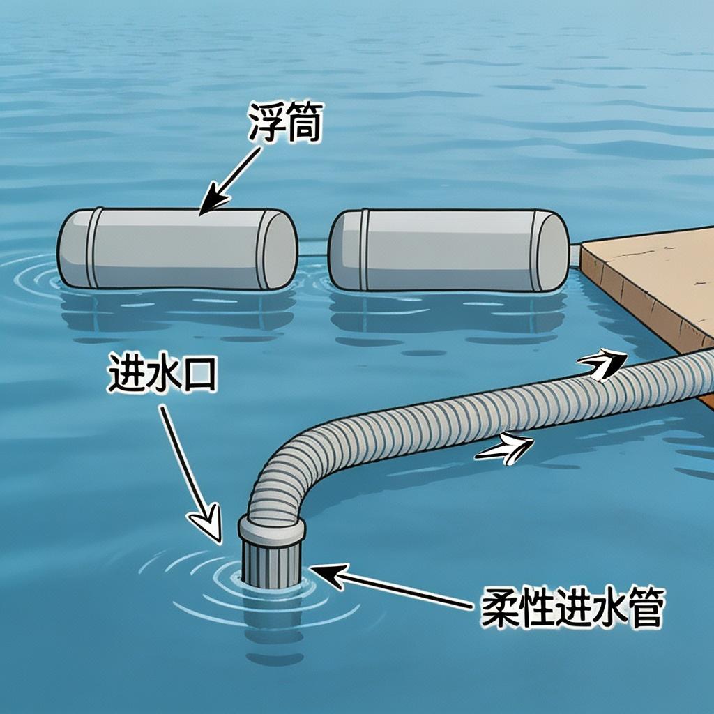 进水口设置不锈钢滤网,位于浮筒下方 0.5-1.5 米深度位置,避免吸入表层杂物。