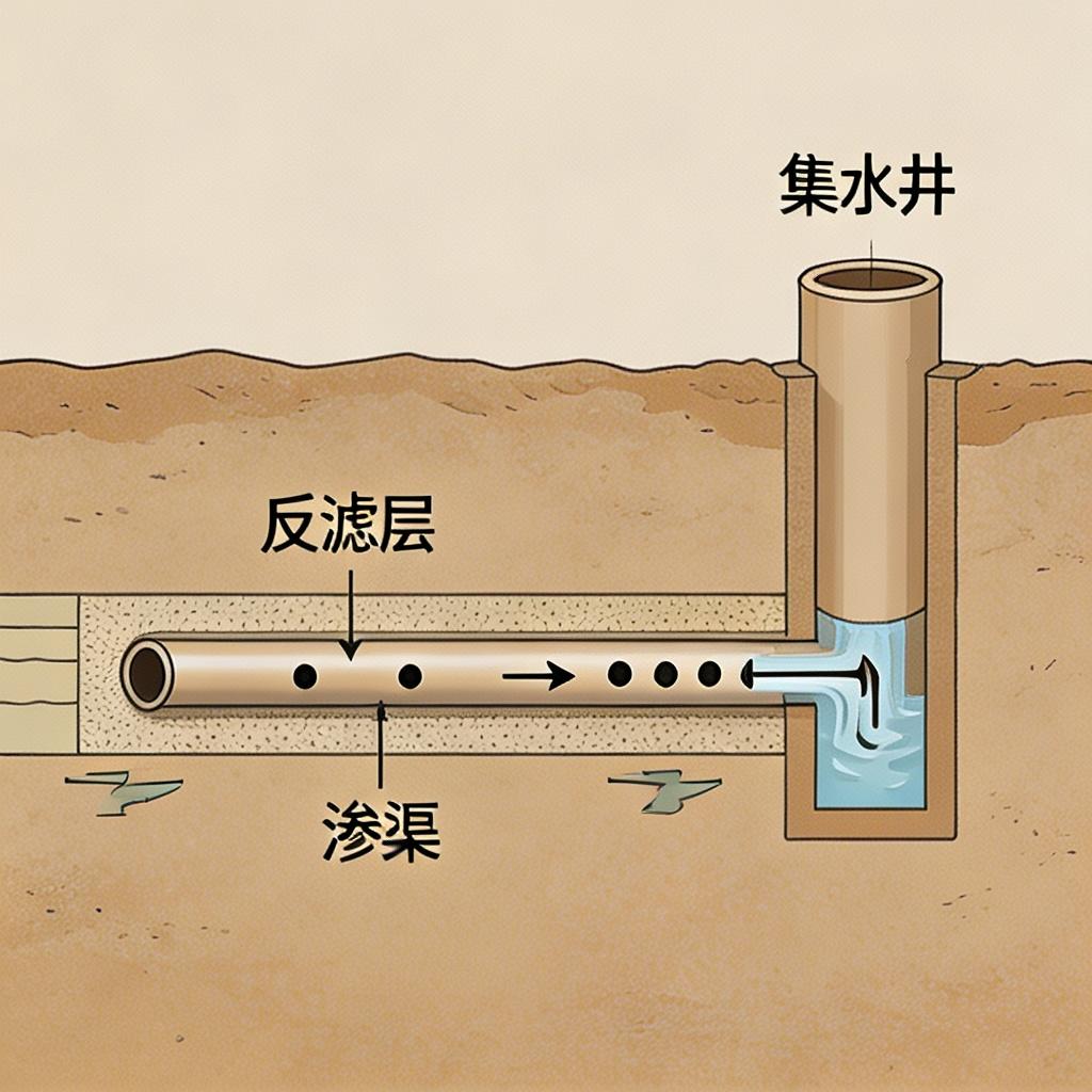 本分类下的器具为河床渗透取水专用设备,通过利用河床的天然过滤层,对地表水进行自然过滤,同时通过渗渠、辐射井等方式收集过滤后的清水,可有效去除地表水中的杂质、悬浮物,提升取水水质,无需额外的净化设备,适用于水质较差的地表水取水场景。