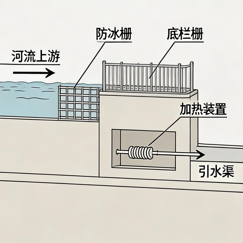 电加热装置可对廊道的入口进行加热,防止结冰,保证水流的通畅,避免冬季的取水中断。