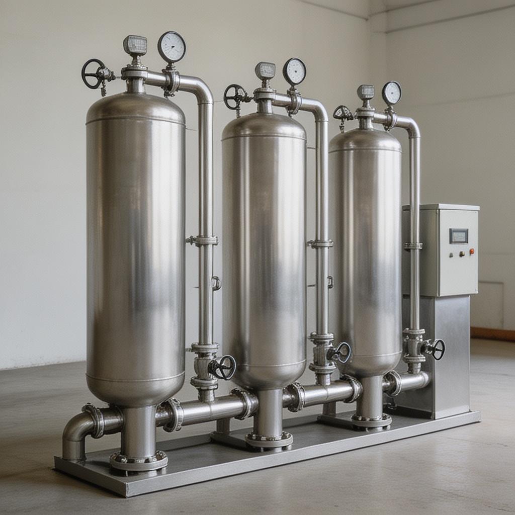 罐体顶部配备控制阀与压力表,用于监控过滤的压力,底部配备排污阀,用于反冲洗排污。