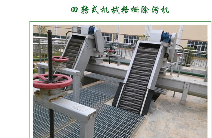 - 回转式格栅除污机:自动清理,拦截效率高,故障率低,运行稳定,维护简单,可有效去除悬浮物